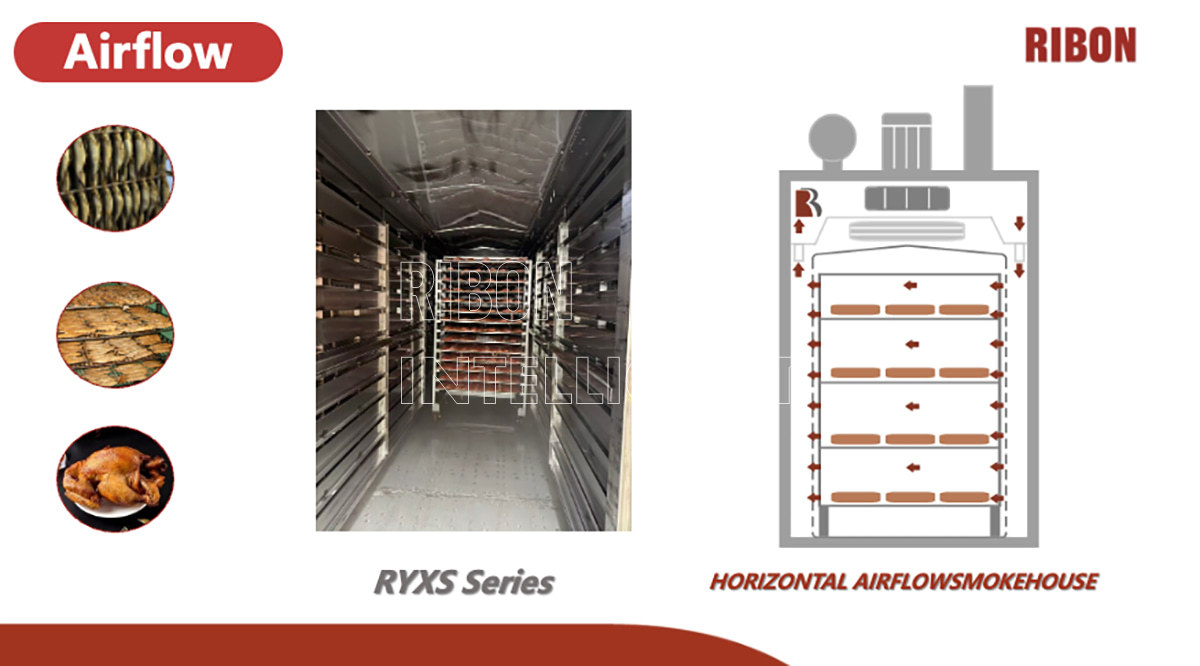 7. Flujo de aire horizontal, que estabiliza la temperatura y la humedad durante el procesamiento para garantizar un color y sabor consistentes en el producto.