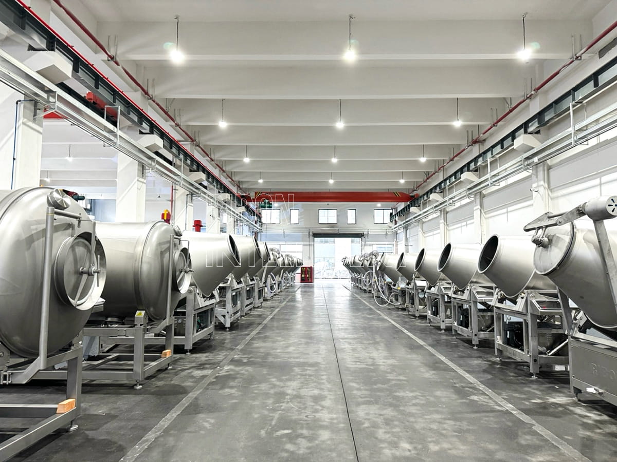 El vaso refrigerado/vaso de enfriamiento RIBON funciona a través de un sistema de refrigeración independiente integrado que funciona en conjunto con una camisa que rodea la pared exterior del tambor. Su objetivo principal es controlar con precisión la temperatura durante el marinado y agitado prolongados de productos cárnicos, abordando así dos puntos críticos: garantizar la seguridad alimentaria y mejorar la calidad del producto final.